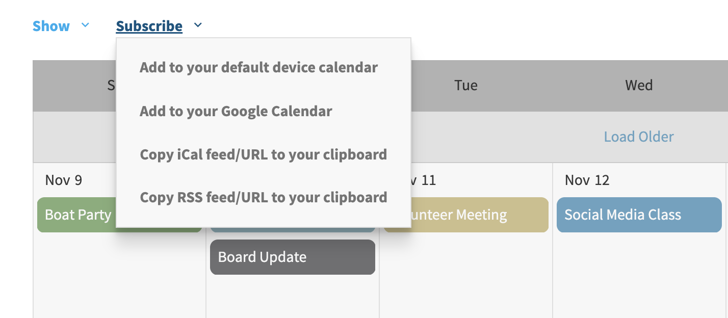 Allow Members and Visitors to Subscribe to Your Events Feed