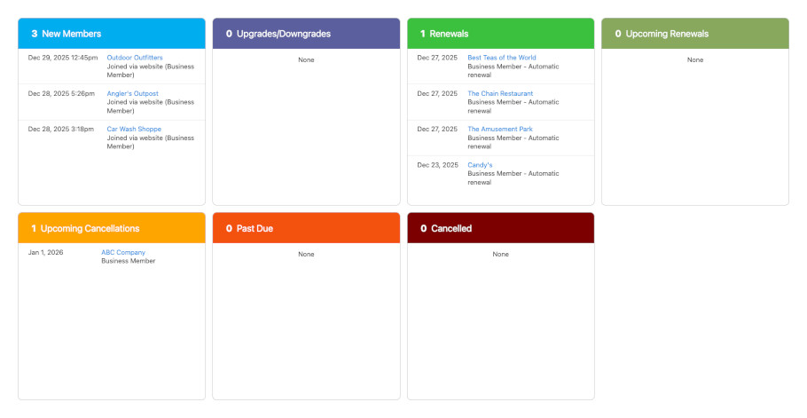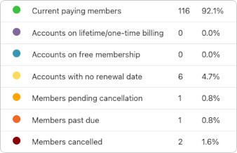 Note 2: Pending cancellation and cancelled sections/stats will not be included if your membership levels do not have cancellations enabled.