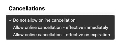 Under Cancellations you can choose to allow the cancellation to take effect immediately or take effect later upon the expiration of their current membership: