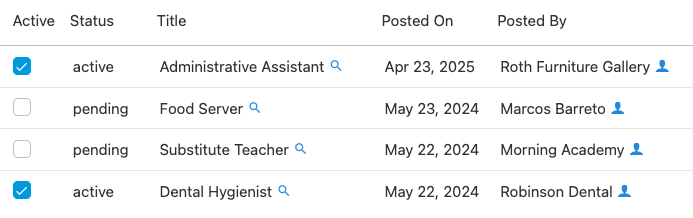 - Click the magnifying glass icon to the right of the listing title to view the listing.