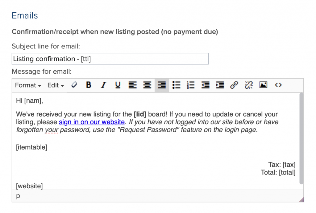 - Set a fee for listings under “Posting fee” if you want to charge listers a per-posting fee to post on your Board.