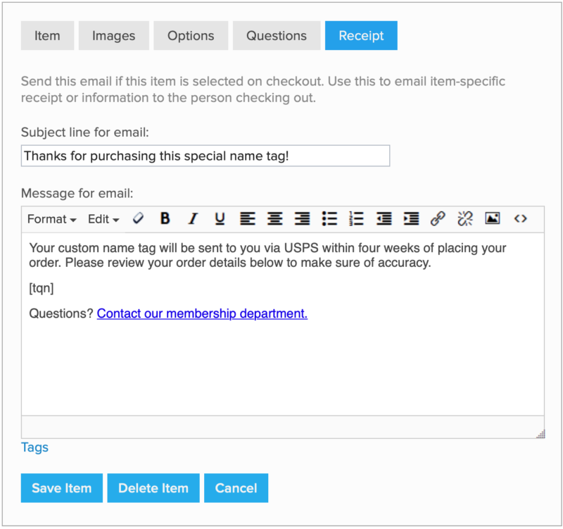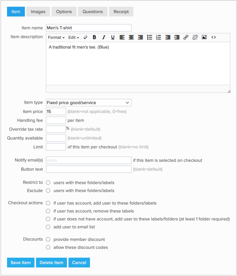- Click Add Item or Save Item (the latter will appear if you have returned to edit your item) to finalize the item