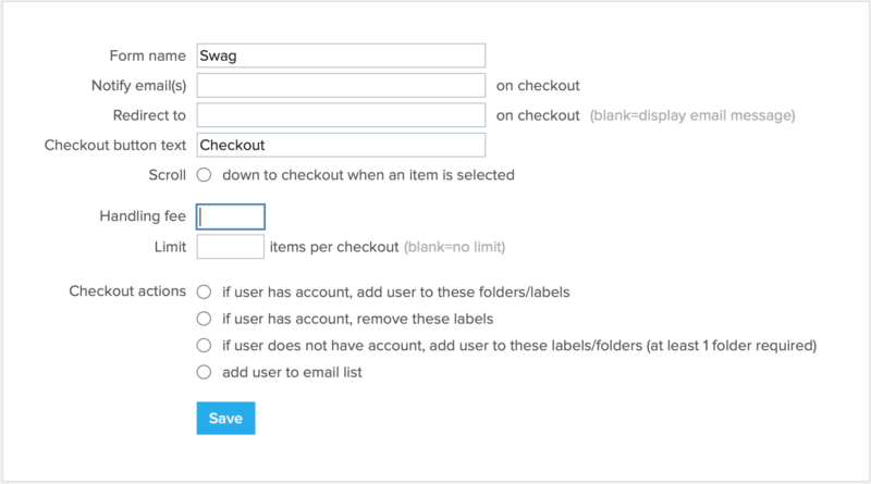 Handling fee: Here you can put the handling fee you would like charged when someone checks out items on this form.