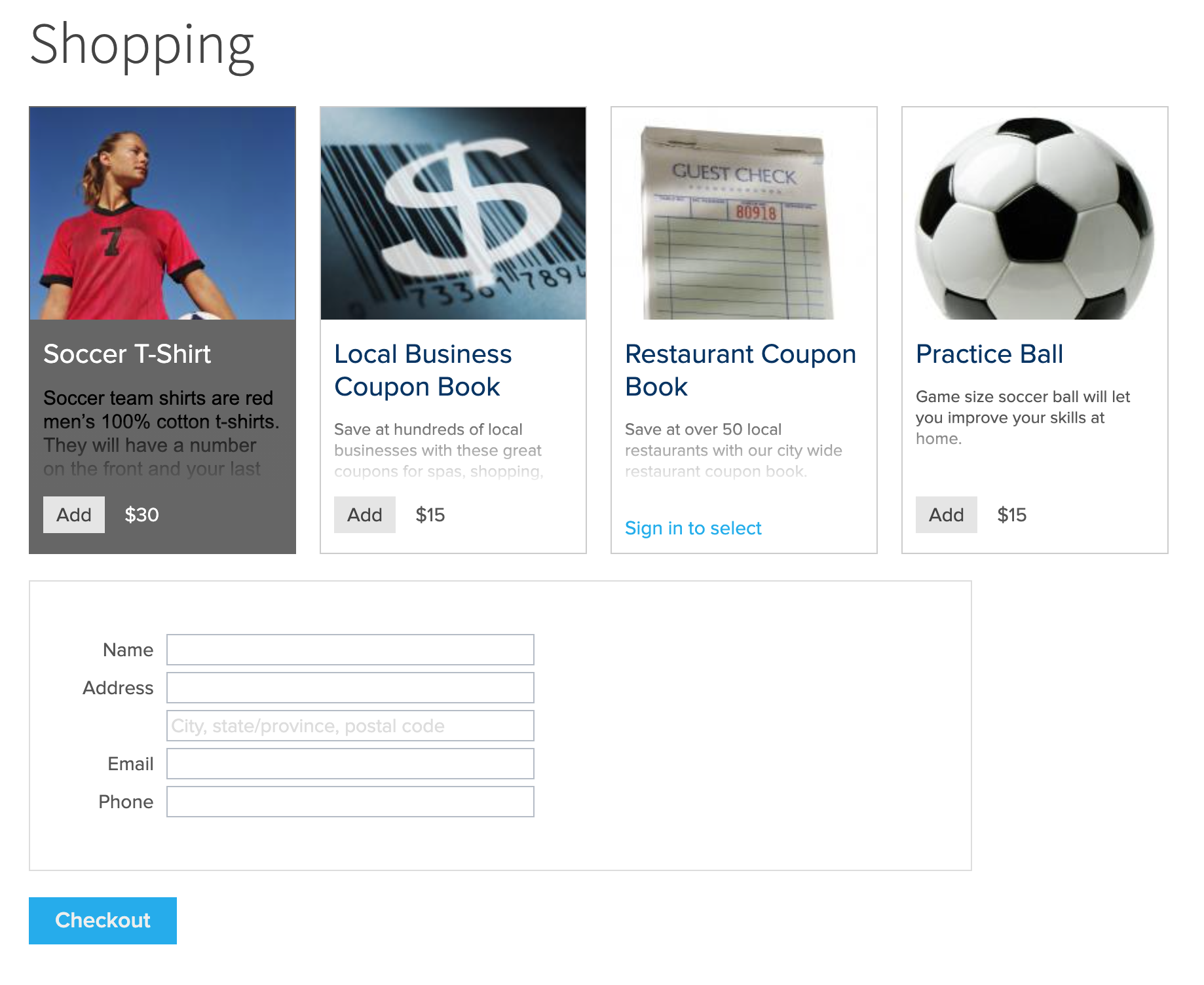 checkout area after an item is selected. If people will be selecting