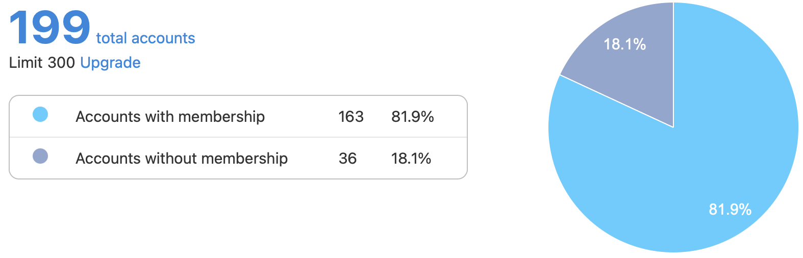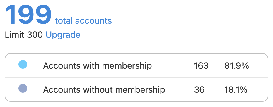 - Accounts w/ membership are accounts that have a membership level attached to them. This includes both free and paid membership levels.