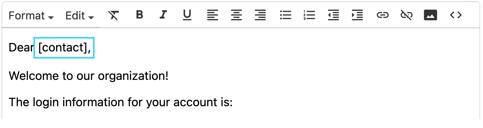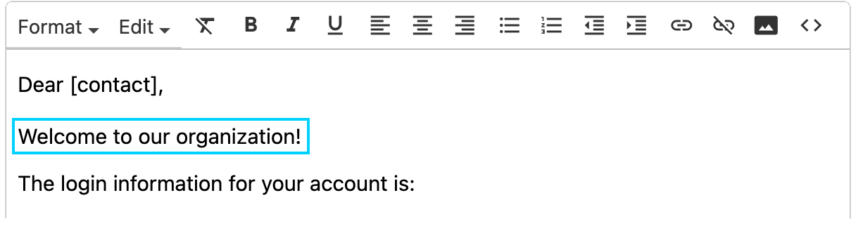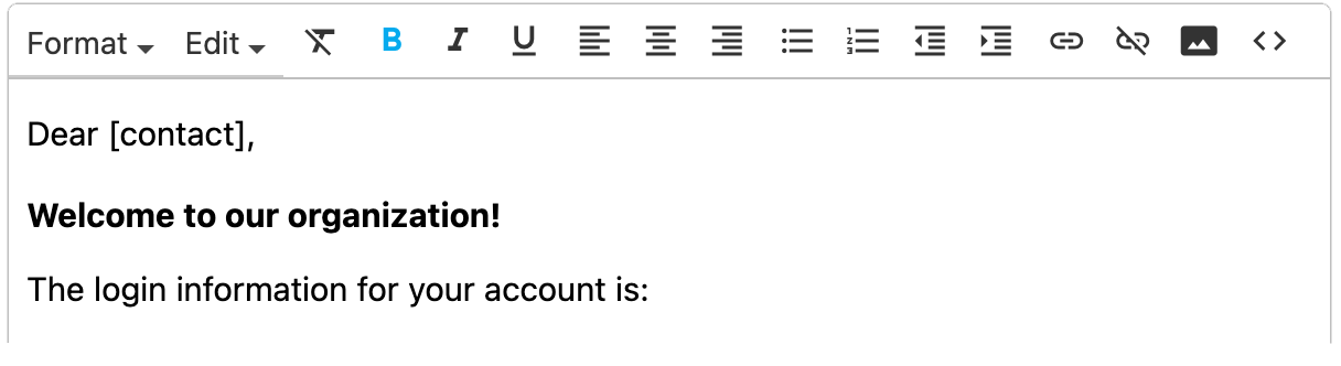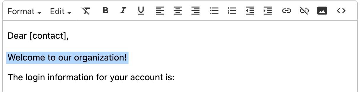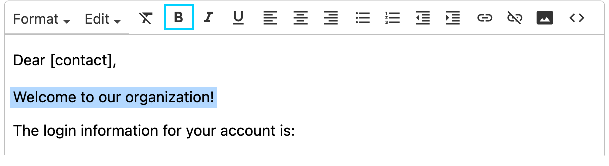 You can use the Bold, Italics, or Underline options on the template toolbar to stylize text in the body of your email.
