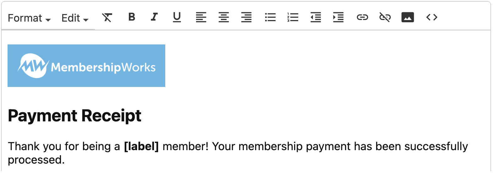 Many emails are sent automatically through MembershipWorks when a particular action occurs. For example, a welcome email is sent automatically to new members when they sign up. You can customize these automatic emails by adding your own verbiage, links, and images to the automatic email templates. We’ve listed some of the ways you can customize these emails below.