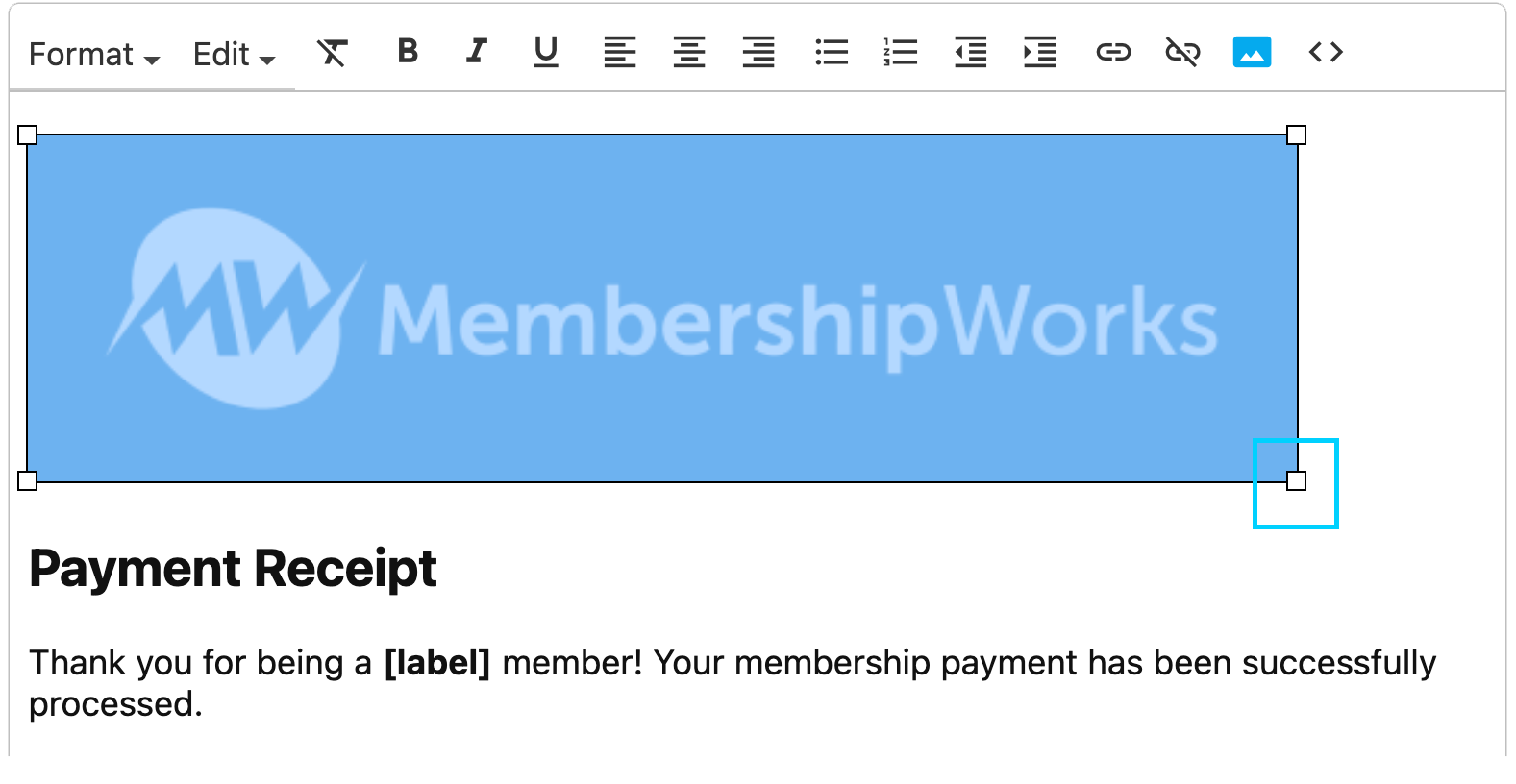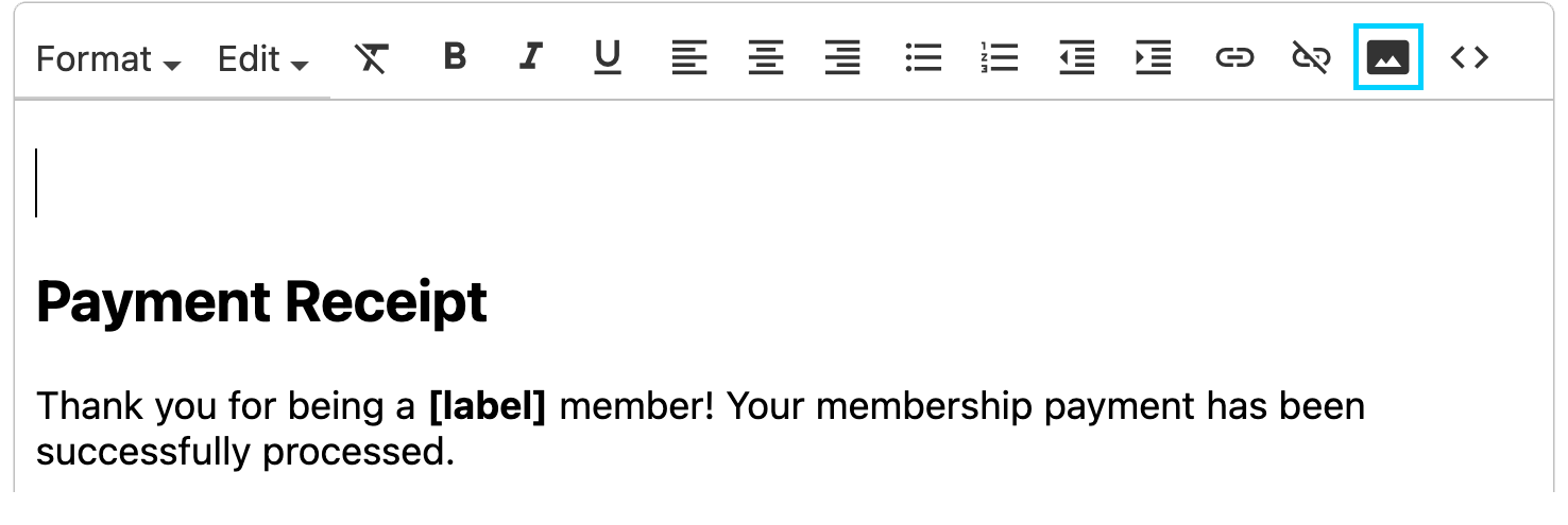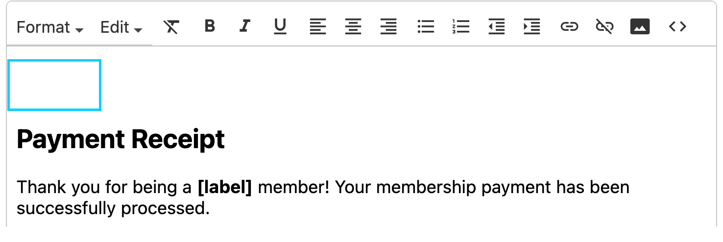insert the image. The example below is our default membership payment
