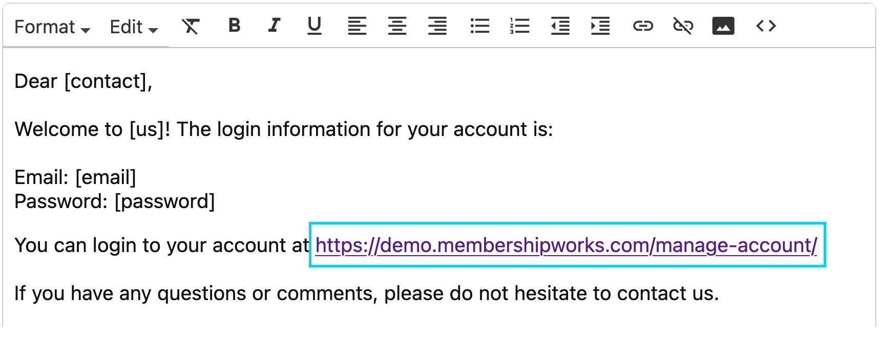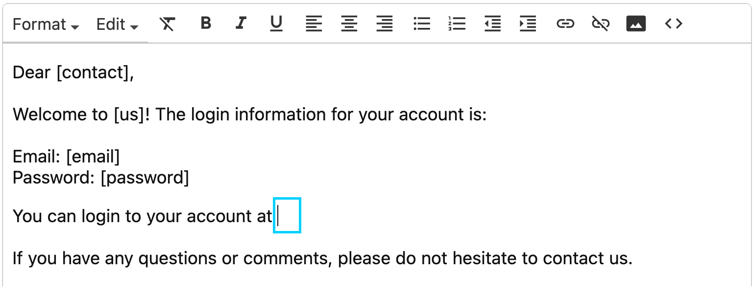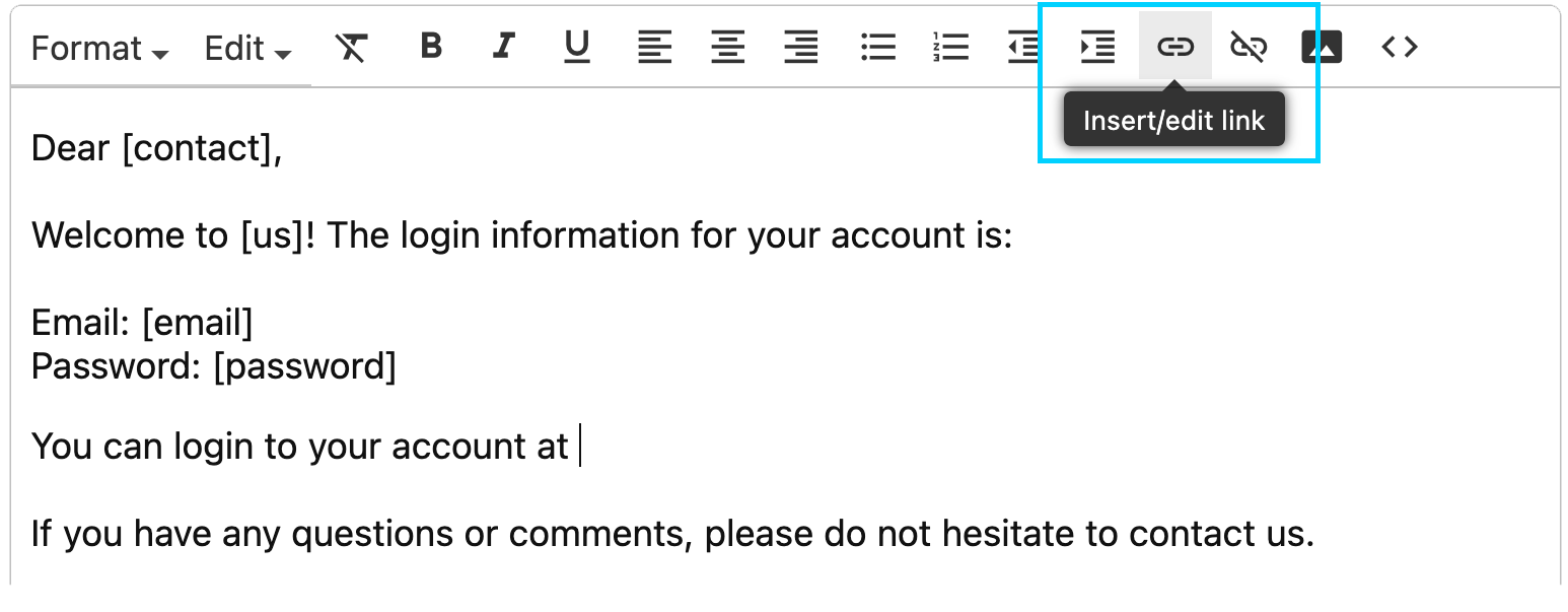 The link will be inserted in the email.