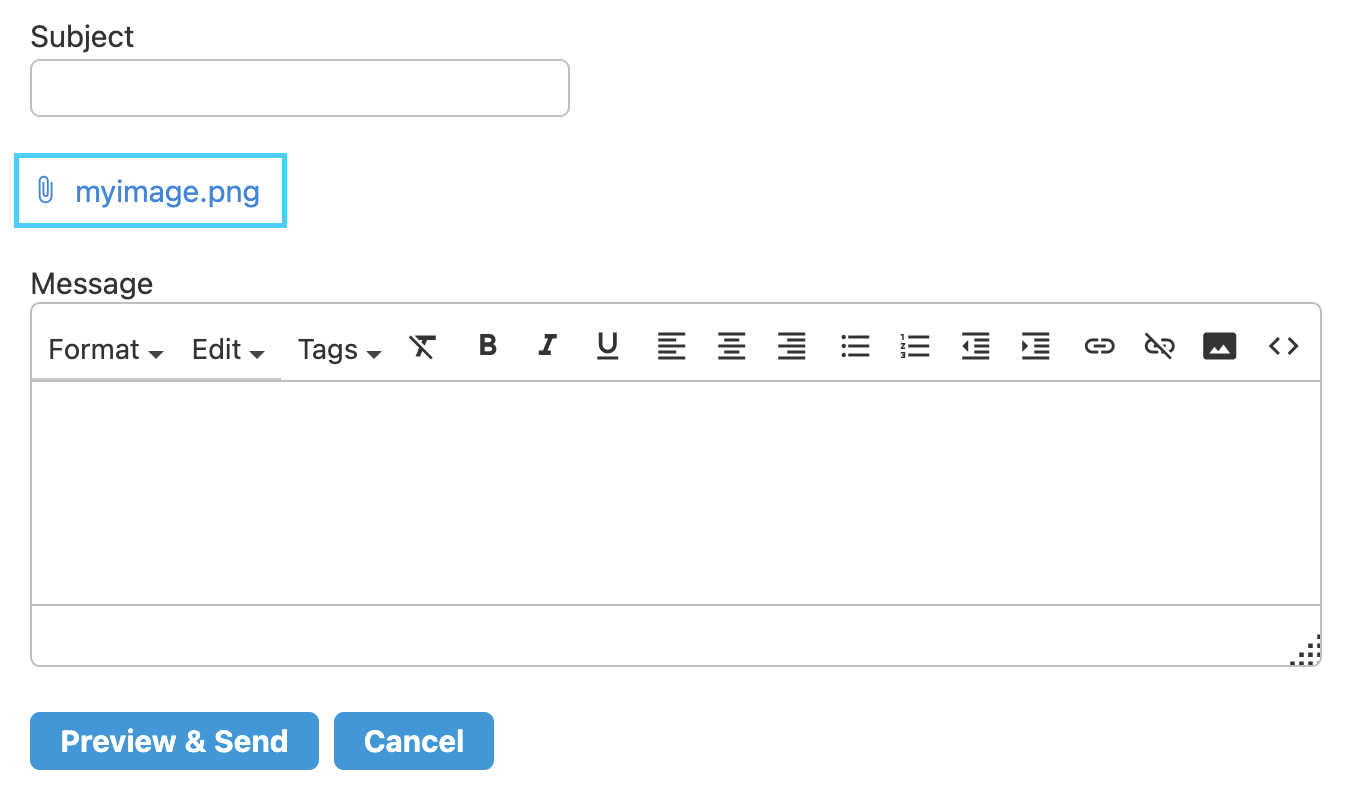 3. The attached file name will display next to a paper clip icon to show it has been successfully attached.