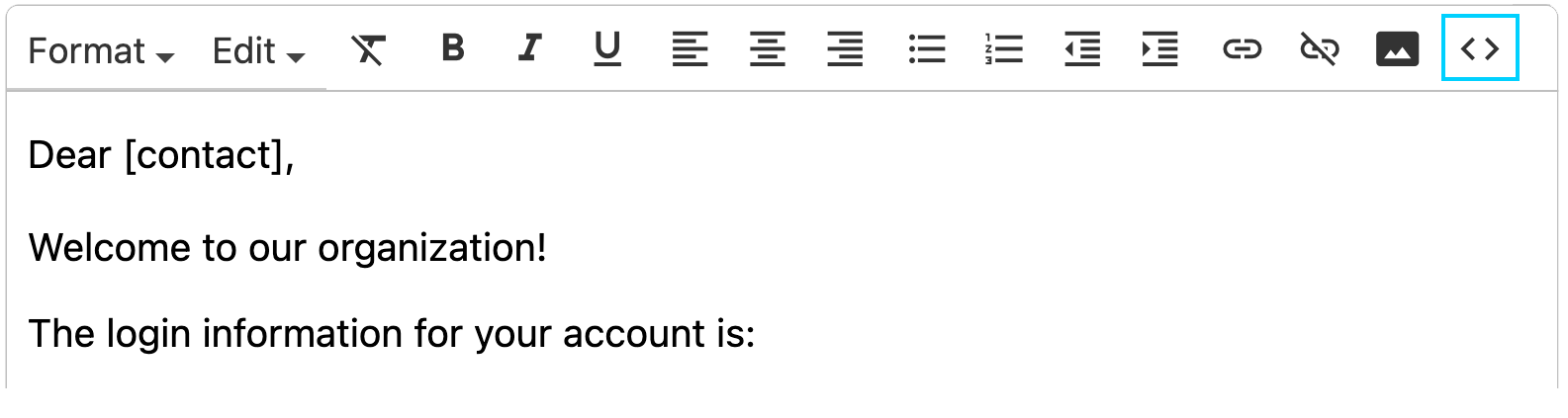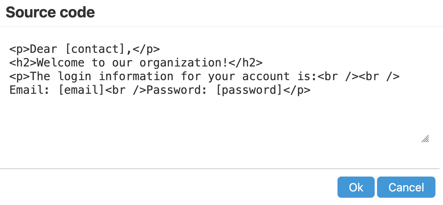 Make your desired HTML changes in the Source Code box and then click OK to close the box and return to the email template.