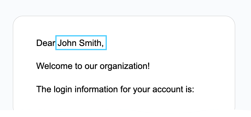 email template where you would like their name to be inserted.
