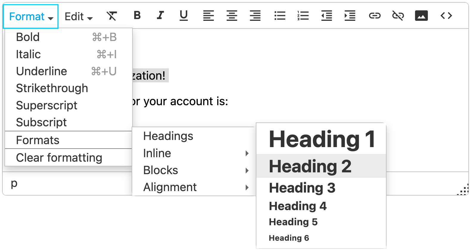 The text that was selected is changed to a heading.