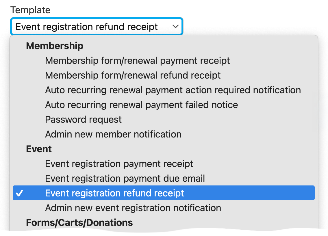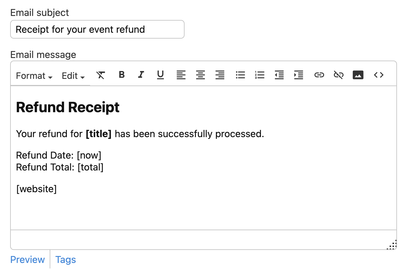 The email template will display below the dropdown. Edit the Email subject and Email message as needed.