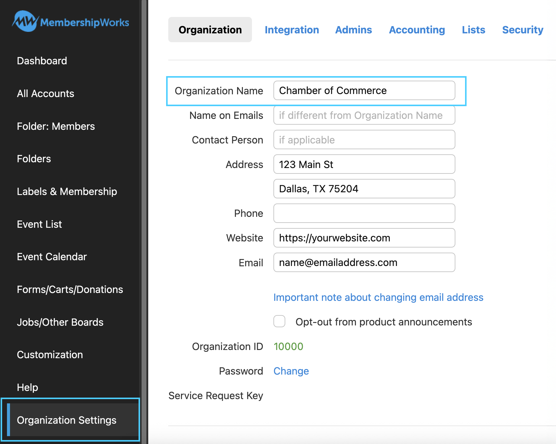 If you see an Organization name field that you are able to change (as shown below), you are logged in as the primary admin.