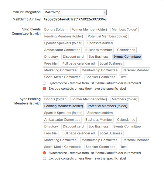 Premium MailChimp is an additional cost service option due to the additional processing load on our servers. To add Premium MailChimp to your account, please go to Organization Settings and upgrade your service plan. Once Premium MailChimp is enabled for your account, you will be able to link all of your MailChimp audiences to your labels/folders under Organization Settings > Lists.