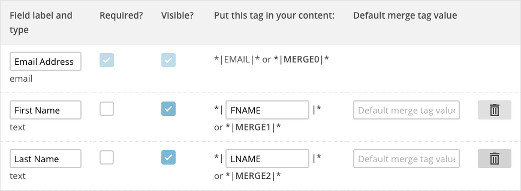 From MailChimp click on your audience and go to Manage Audience > Settings > Audience Fields and *|MERGE|* tags. Ensure that "Required" is disabled for all fields except email address, and that the "FNAME" and "LNAME" merge tags are listed.