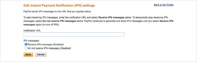 Return to My Selling Tools on the settings page and click on the link under Instant payment notifications.