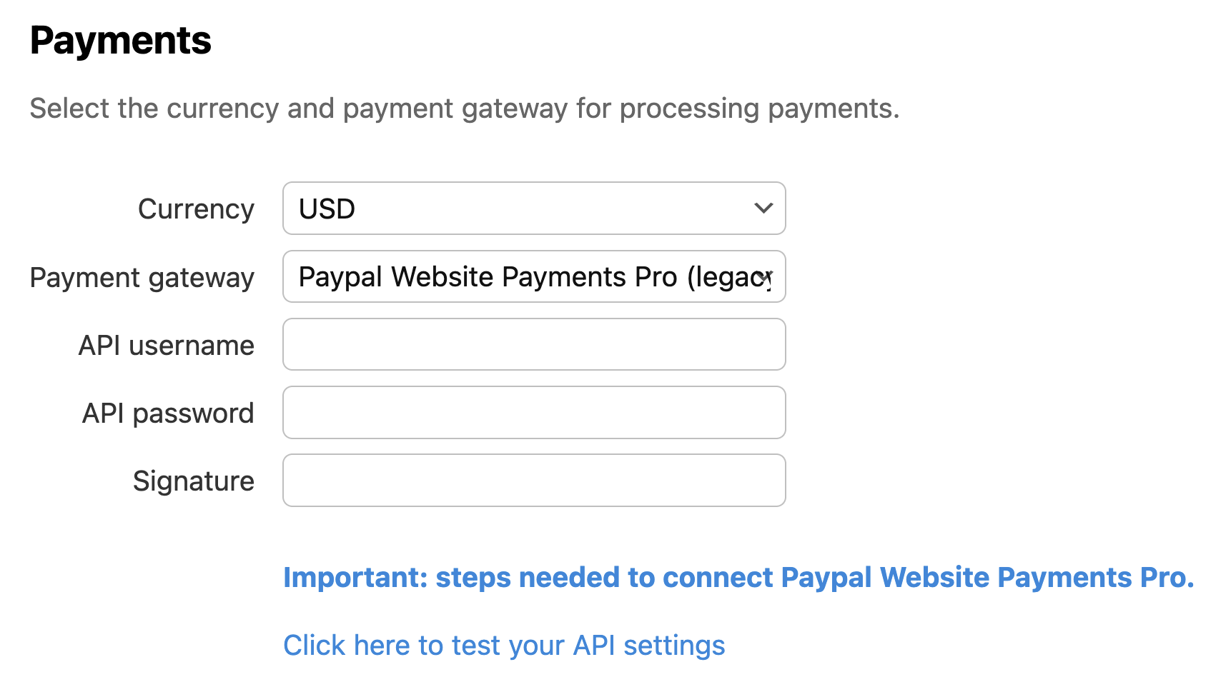 You will need a PayPal Website Payments Pro account for this integration. If you need automatic recurring billing for memberships you will also need to signup for Recurring Payments. Note that these services incur monthly fees with PayPal.