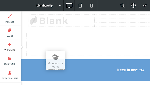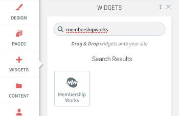 Click on + Widgets in the left side menu and search for MembershipWorks