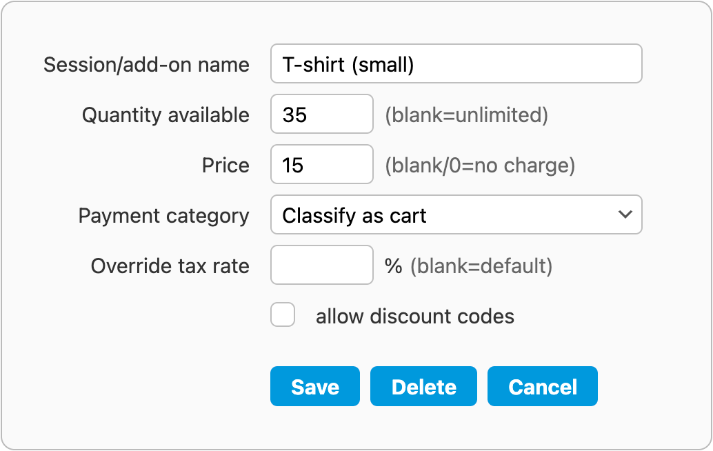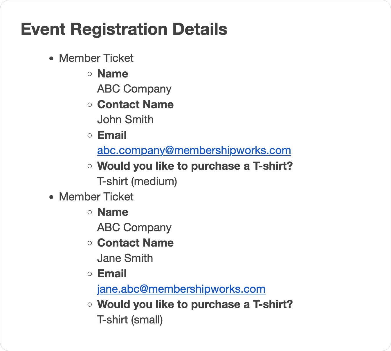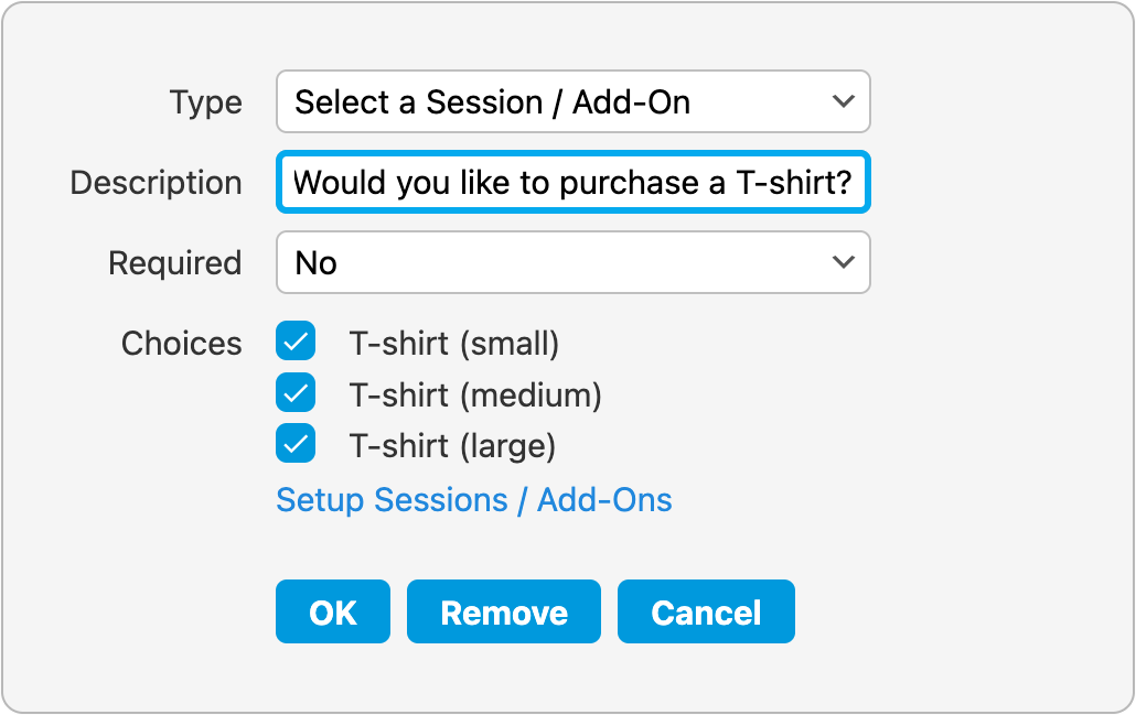 t-shirts) when registering for an event. You can offer several options