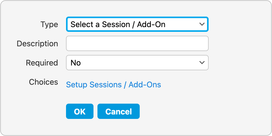 - Next to Type, select Select a Session / Add-On from the drop down.