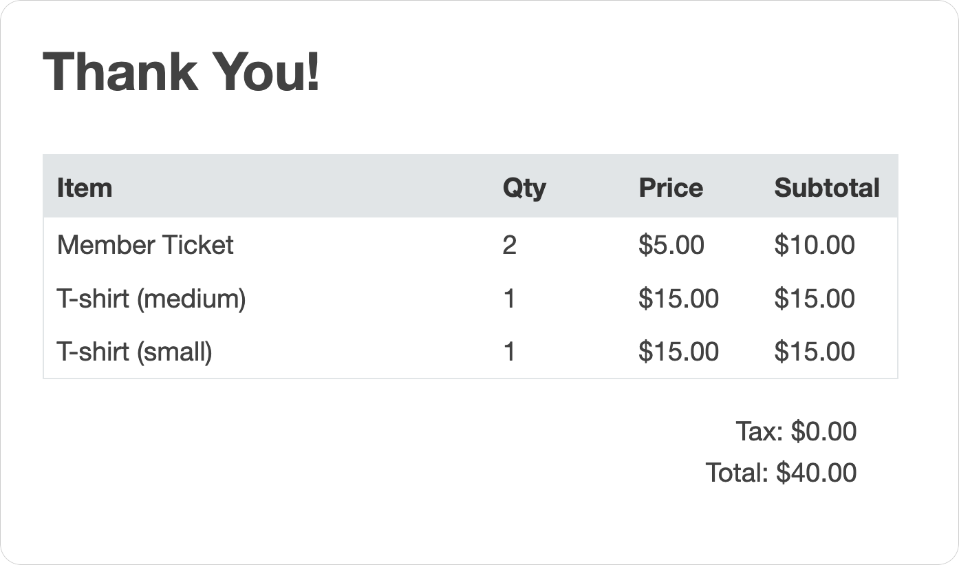 item. In the example below 2 member tickets were purchased along with 1