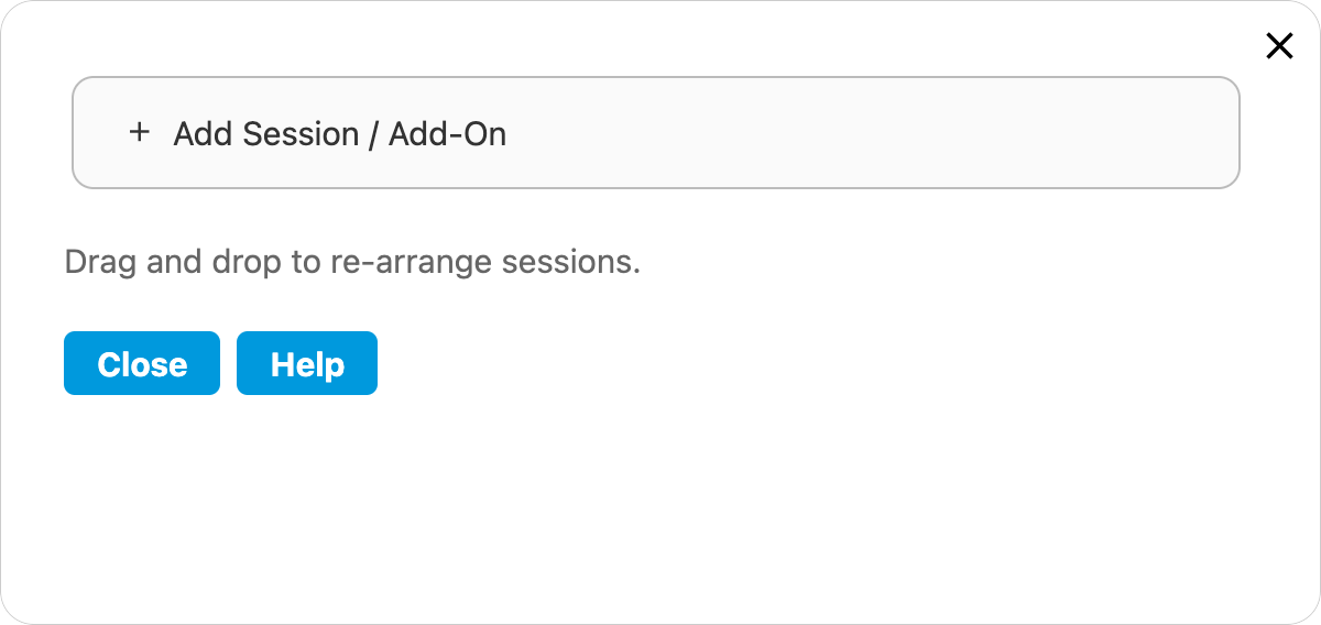 - Click + Add Session / Add-On in the pop-up window.