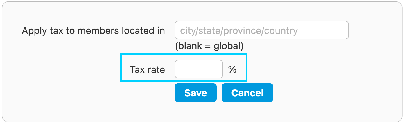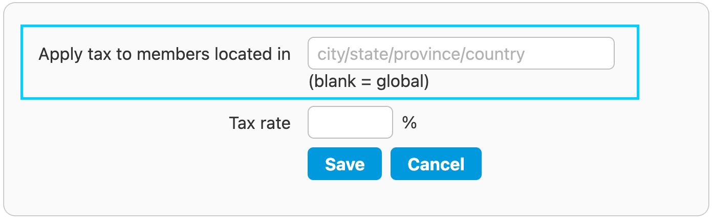If your organization intends to apply the same tax rate to all members no matter their location we recommend leaving the location blank. As noted blank = global.