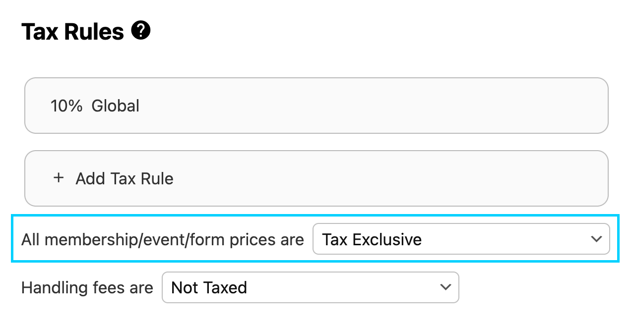 When set to tax exclusive, the applicable tax will be calculated and added to the price.