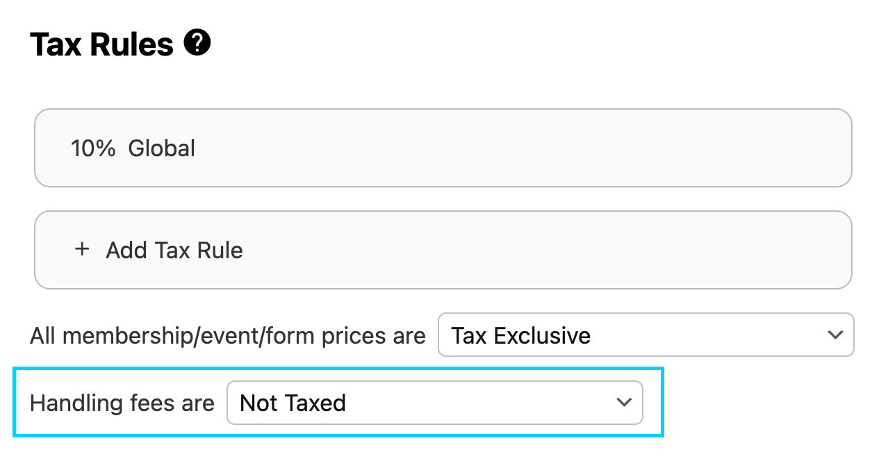 Next to Handling fees are, select if your handling fees are Not Taxed or Taxable.