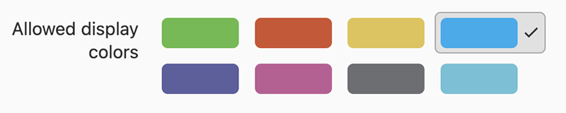 Next to Allowed display colors, select at least one color that you want to use for this category. You'll see a check mark next to the color(s) you've selected.
