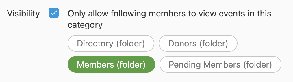 After selecting this option, you will see a list of groups of members based on folders, labels, and membership levels. Click on the members that you want to be able to view events that you add to this category. The folders, labels, levels that you select will turn green to show they've been selected.