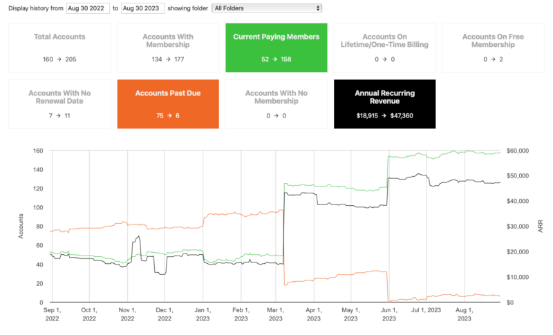 - Use the trendline for “Annual Recurring Revenue” to see if recurring dues income is headed in the right direction.